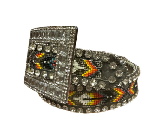 Nocona Belt - Aztec Beaded Pattern with Rhinestones