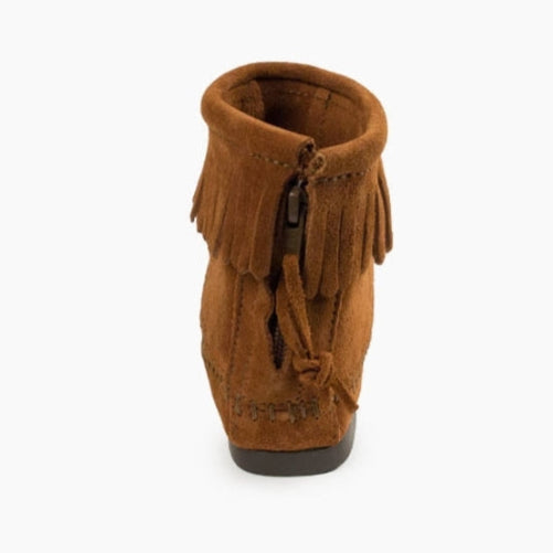 Minnetonka Women's Back Zip Softsole Brown Boot with Fringe on Top