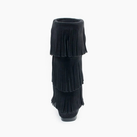 Minnetonka Women's 3 Layer Fringe Black Boots
