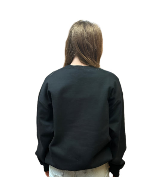 Women's Black Sweatshirt with Boot Stitching Graphic Crewneck