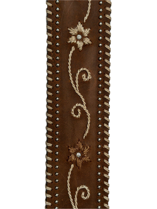 Nocona Belt Brown Leather Wide Dress Belt with Embroidered Flowers