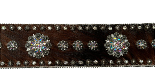 Nocona Belt Dressy Wide Brown Horsehair with Silver Conchos Adorned with Rhinestones