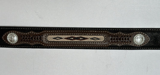 Nocona Belt - Southwestern Woven with Conchos on Brown Leather