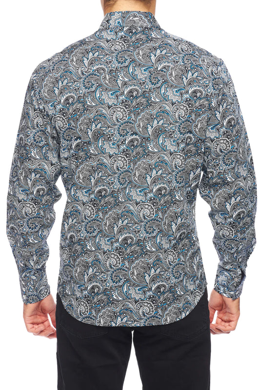 Rodeo Clothing Co. Men's Long Sleeve Shirt - Black, Blue & White Paisley