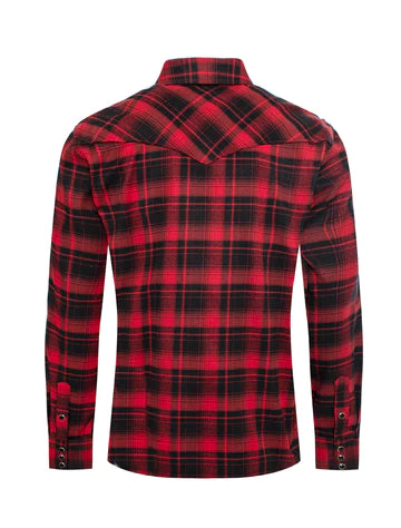Rodeo Clothing Co. Men's Long Sleeve Shirt - Light Flannel Red & Black Plaid