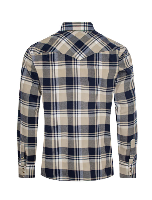 Rodeo Clothing Co. Men's Long Sleeve Shirt - Light Flannel Navy, Khaki & White Plaid