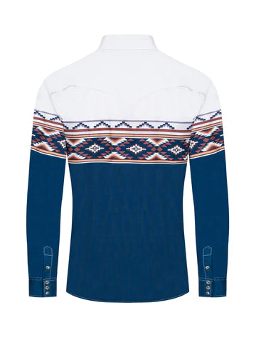 Rodeo Clothing Co. Men's Long Sleeve Shirt - Navy & Cream with Aztec Band Across Chest
