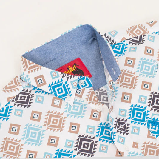 Rodeo Clothing Co. Men's Long Sleeve White Aztec Print Shirt