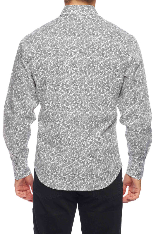 Rodeo Clothing Co. Men's Long Sleeve Western Pearl Snap White & Black Paisley Shirt