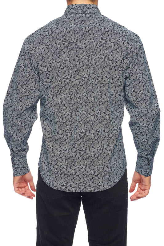 Rodeo Clothing Co. Men's Long Sleeve Western Pearl Snap Black & White Paisley Shirt