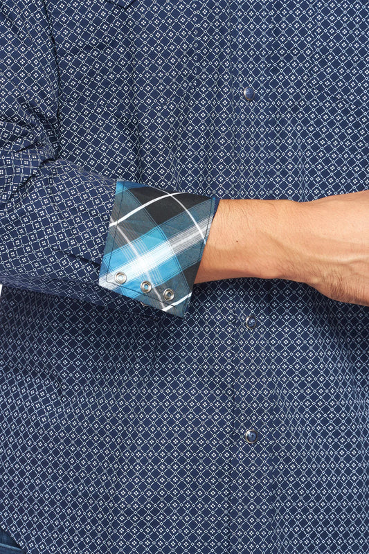 Rodeo Clothing Co. Men's Long Sleeve Shirt - Navy & White Geometric Print