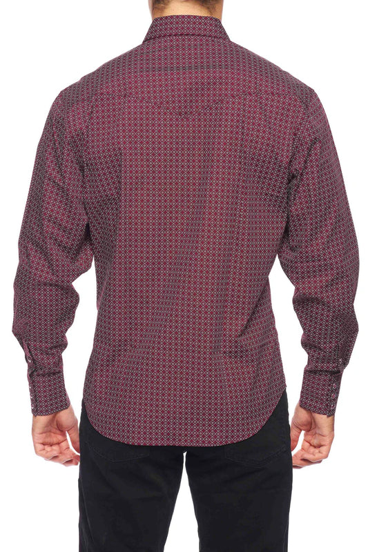 Rodeo Clothing Co. Men's Long Sleeve Western Pearl Snap Burgundy & White Print Shirt