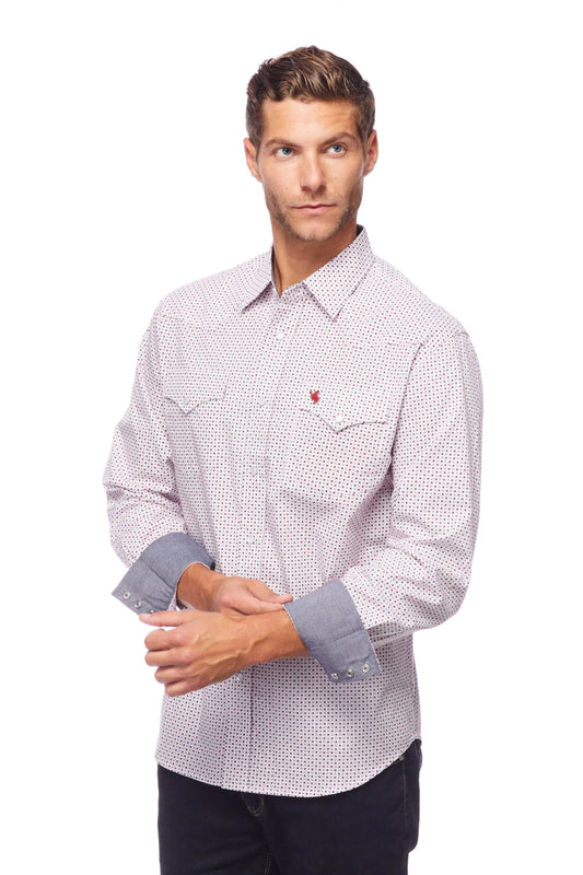 Rodeo Clothing Men's Long Sleeve Shirt - White with Red & Black Print
