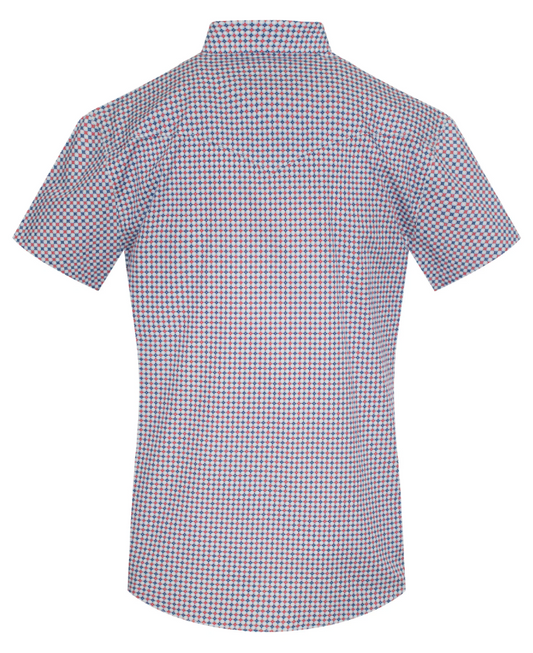 Rodeo Clothing Men's Short Sleeve Pearl Snap Red, White & Blue Print Shirt