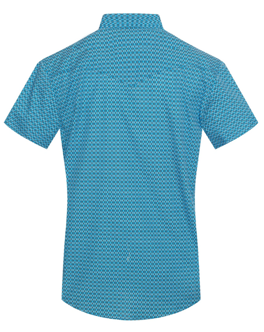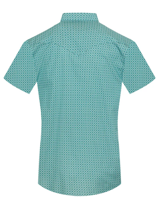 Rodeo Clothing Men's Short Sleeve Pearl Snap Turquoise & Black Print Shirt