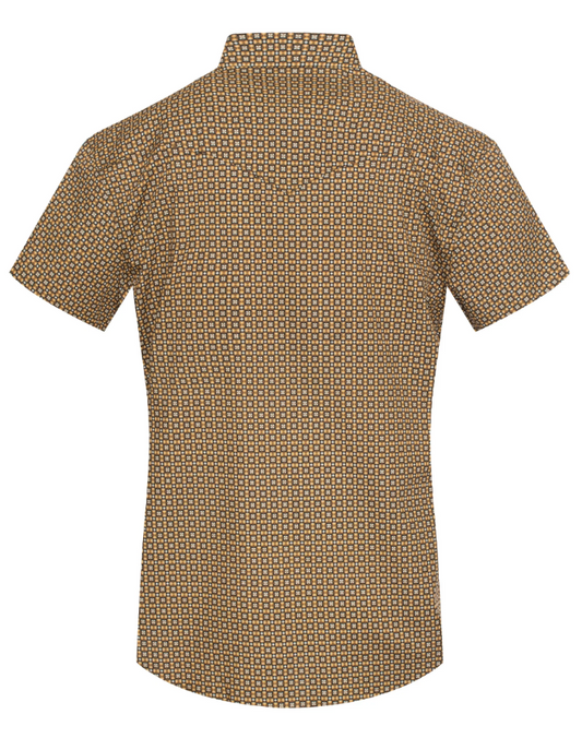 Rodeo Clothing Men's Short Sleeve Pearl Snap Brown Print Shirt