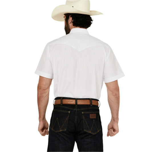 Rodeo Clothing Men's Short Sleeve Shirt - White Tonal Satin Stripe