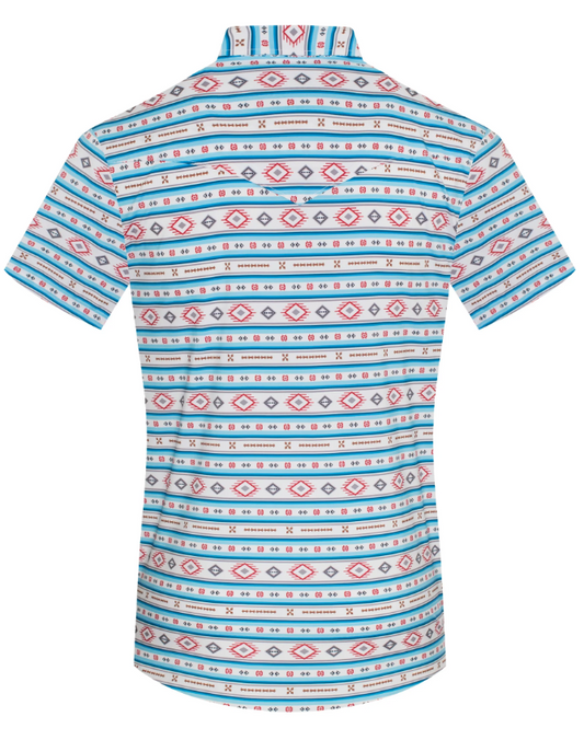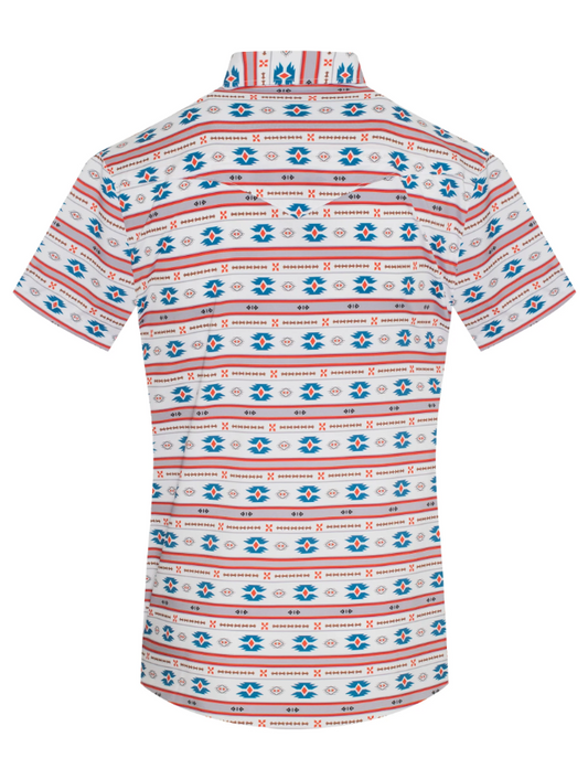 Rodeo Clothing Men's Short Sleeve Shirt - White, Red & Blue Print