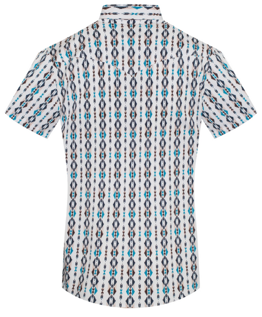 Rodeo Clothing Men's Short Sleeve Shirt - Western Pearl Snap Aztec Print
