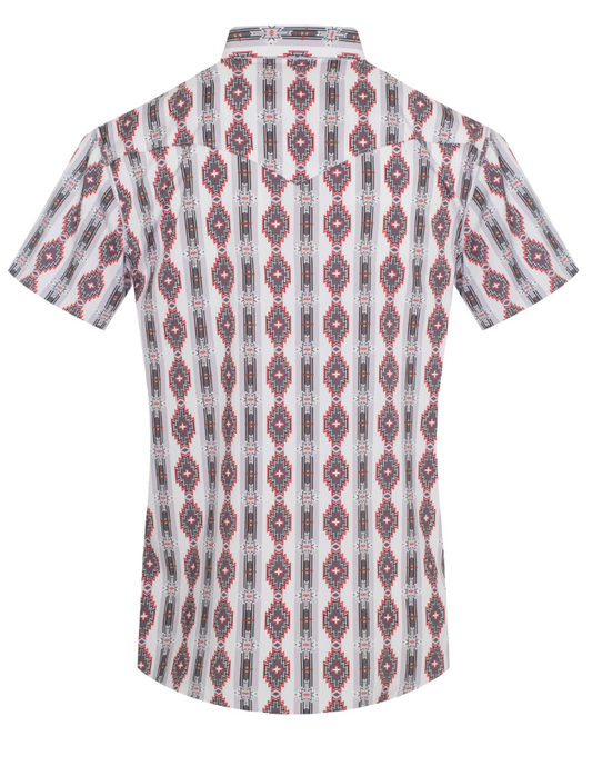 Rodeo Clothing Men's Short Sleeve Shirt - White with Red & Black Print