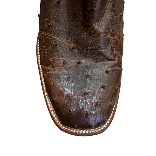 Stetson Men's Boots - Brown Full Quill Ostrich Square Toe with Tan Stitched Top