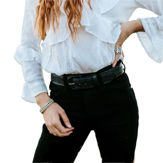 Vogt Black Floral Pattern 1-1/2" Tapered to 1" Belt