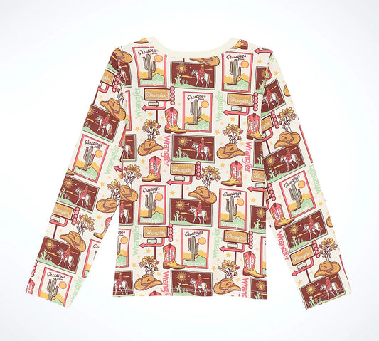 Wrangler Girl's Long Sleeve Western Graphic Tee - Allover Boots