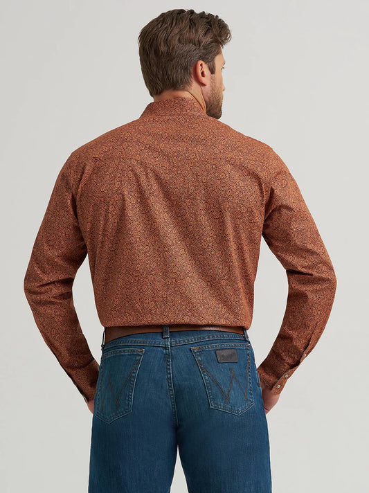 Wrangler Men's 20X Competition Advanced Comfort Long Sleeve Western Snap Rustic Brown Shirt