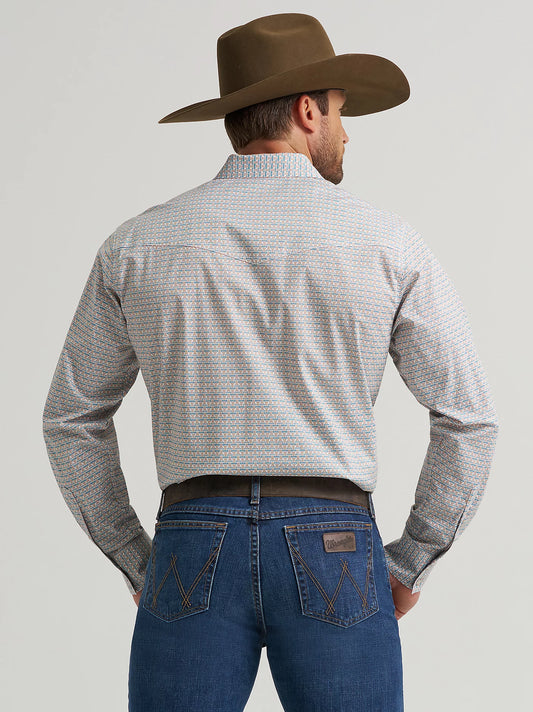 Wrangler Men's 20X Competition Advanced Comfort Long Sleeve Western Snap Teal & Brown PrintShirt