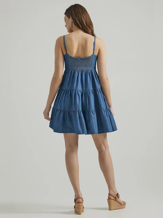 Wrangler Women's Denim Strappy Tiered Dress in Blue Denim