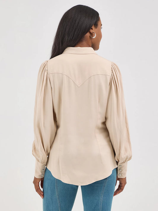 Wrangler Women's Beige Poet Sleeve Western Shirt
