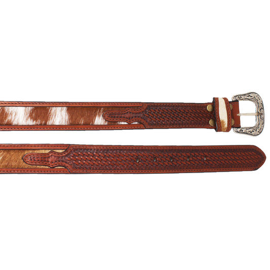 Challenger Western Horsehair Rodeo Floral Tooled Leather Belt 1 1/2" Wide