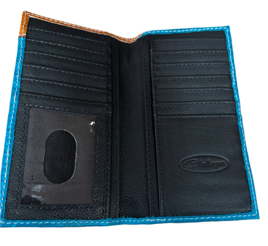 Challenger Western Brown Leather Rodeo Wallet with Tooling Detail in Corner