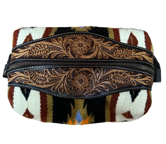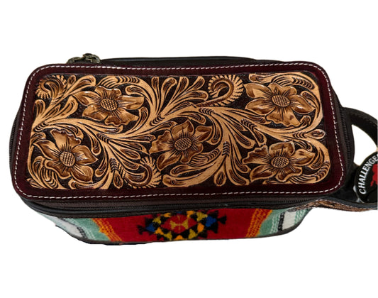 Challenger Western Woven Floral Tooled Leather Travel Toiletry Kit Bag