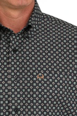 Cinch Men's Arenaflex Short Sleeve Shirt Geometric Print Blue