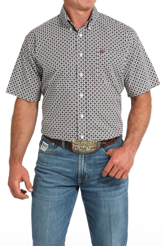 Cinch Men's Diamond Print Button-Down Short Sleeve Western Shirt - White