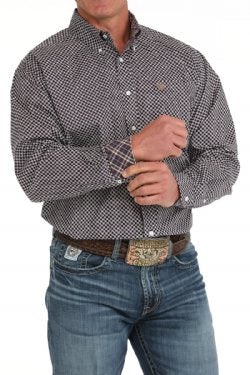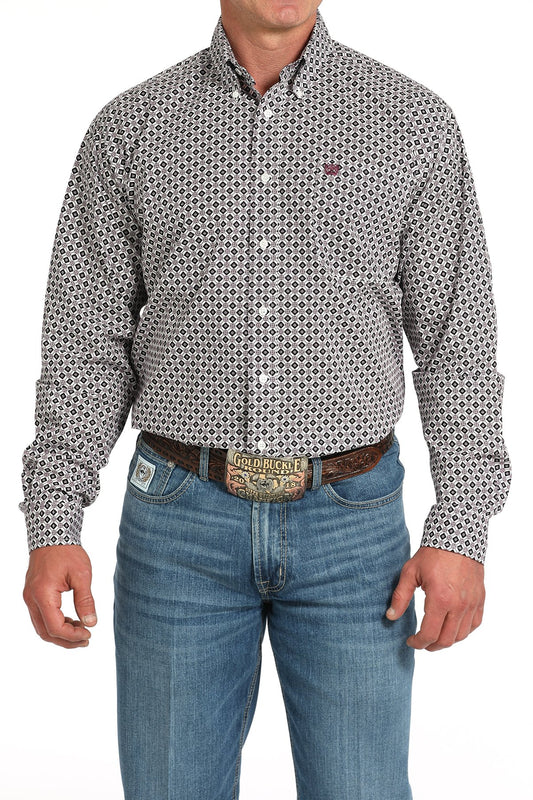 Cinch Men's Diamond Print Button-Down Long Sleeve Western Shirt - White