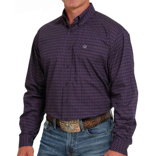 Cinch Men's Long Sleeve Shirt - Geometric Print - Purple