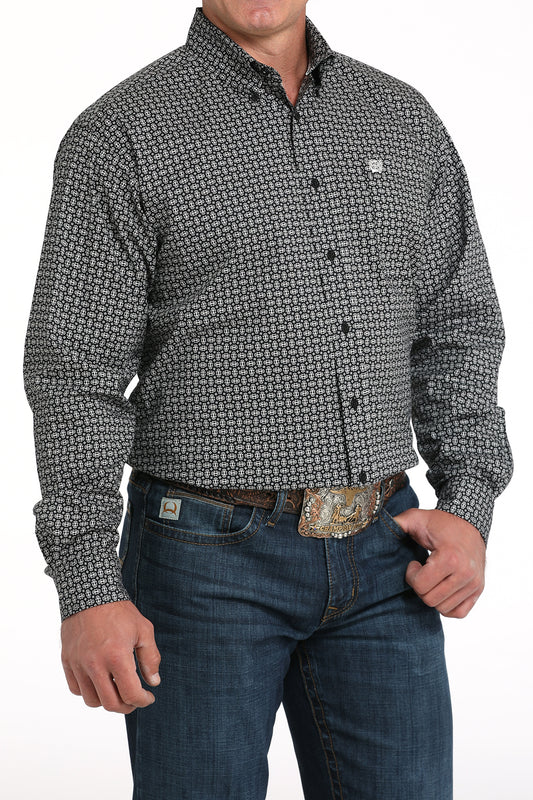 Cinch Men's Long Sleeve Western Shirt - Black and White Geometric Print