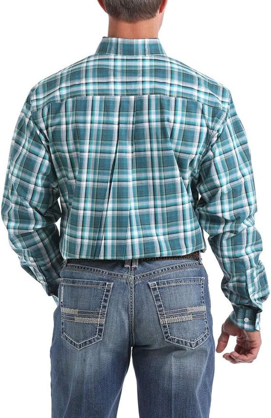 Cinch Men's Long Sleeve Western Shirt - Green, Teal, Brown & Cream Plaid
