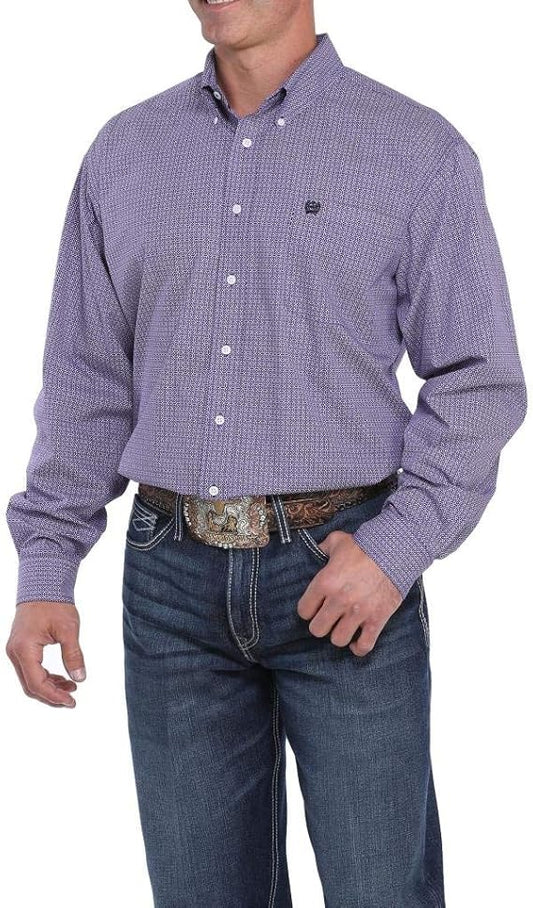 Cinch Men's Long Sleeve Western Shirt - Geometric Print Purple & White