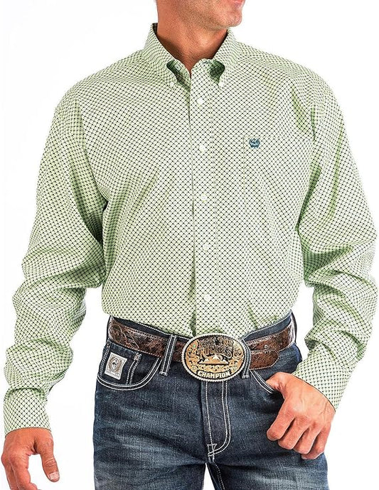 Cinch Men's Long Sleeve Western Shirt - Geometric Print Lime, Green & White