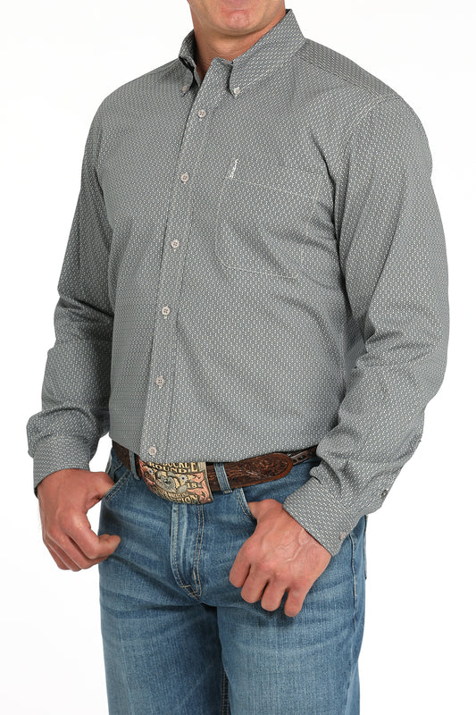 Cinch Men's Shirts - Long Sleeve Modern Fit Geometric Print Shirt - Gray