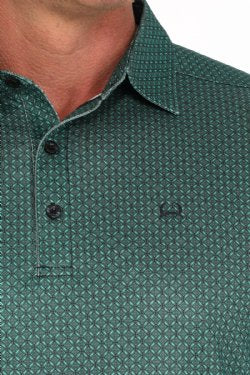 Cinch Men's Short Sleeve Arenaflex Geometric Print Polo - Turquoise