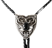 Double S Bolo Tie with Arrowhead Concho with Black Stone