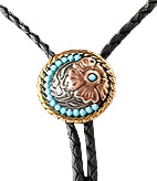 Double S Round Concho with a Raised Brass Flower Bolo Tie