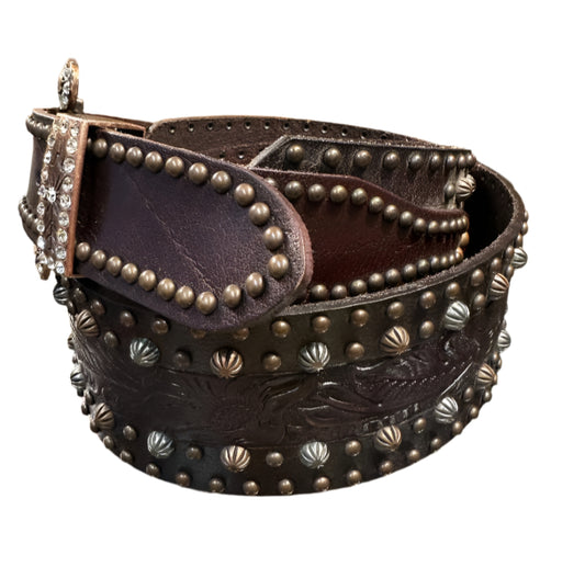 Angel Ranch Belt Brown Leather Tooled with Concho Buckles