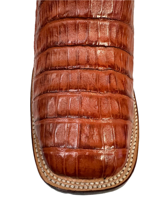 Los Altos Men's Boots - Caiman Belly Pieced Vamp Cognac Square Toe