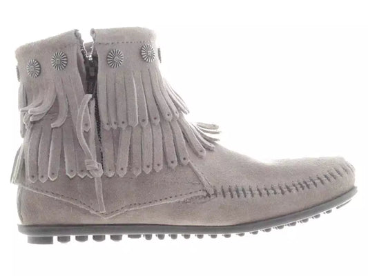 Minnetonka Women's Double Fringe Side Zip Grey Booties