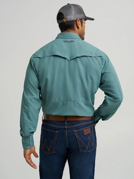 Wrangler Men's Performance Snap Long Sleeve Solid Pine Shirt
